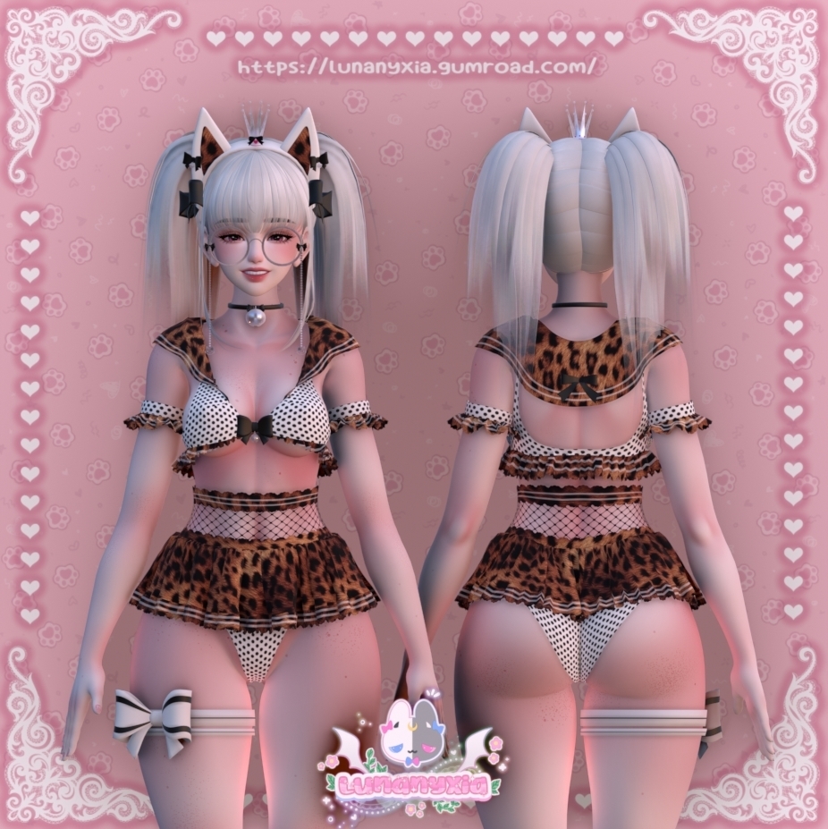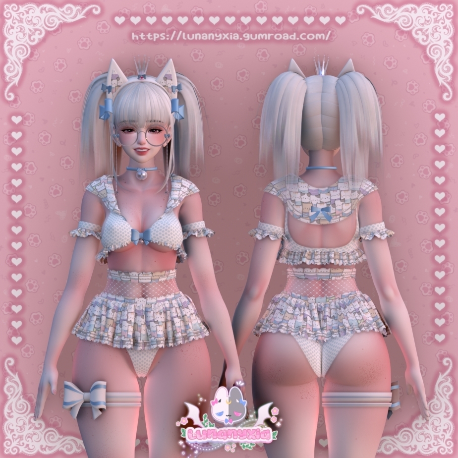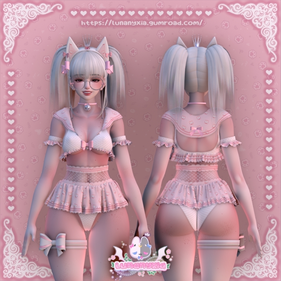 β‘ You will receive this outfit only, the avatar is not part of the purchase. The outfit is made of : bra, skirt, headband, glasses, choker and garter β‘ 8 different textures available